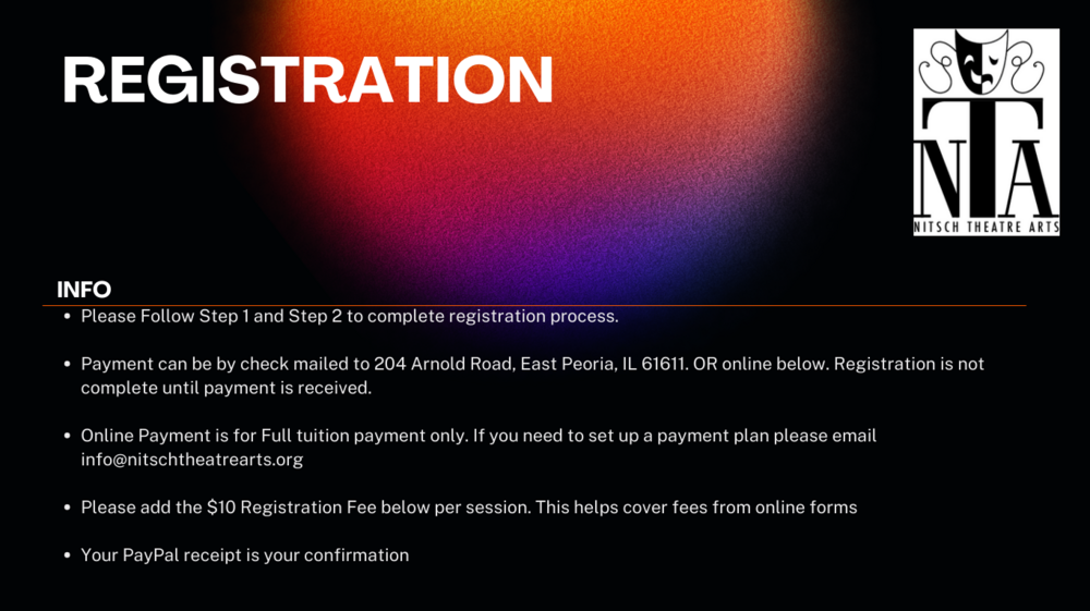 Please add the $25 non refundable one time Registration Fee below at time of registration(One per student for summer). Full payment due 2 weeks before camp start date.